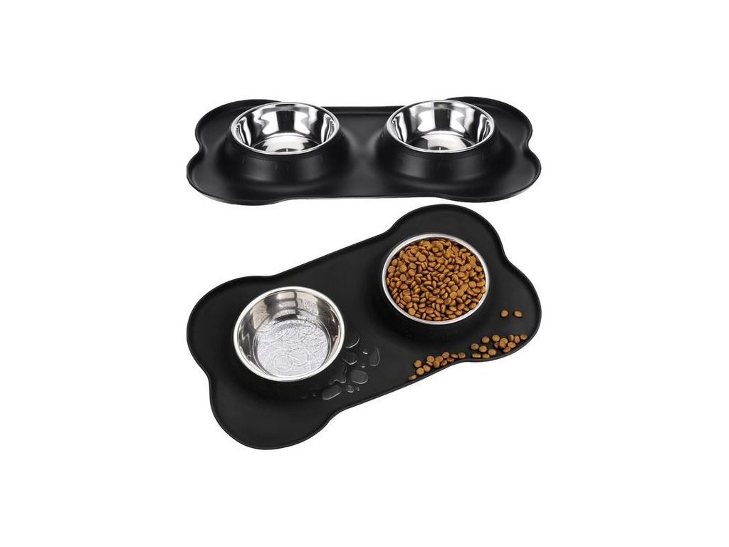Miska pro psy a kočky dvojitá, nerezová, 2 x 350 ml černá Purlov