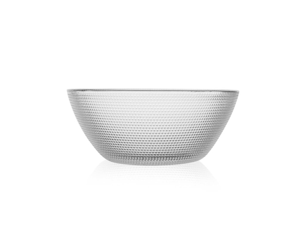 Skleněná miska s plastickým dekorem.Materiál sklo (max 80°C).