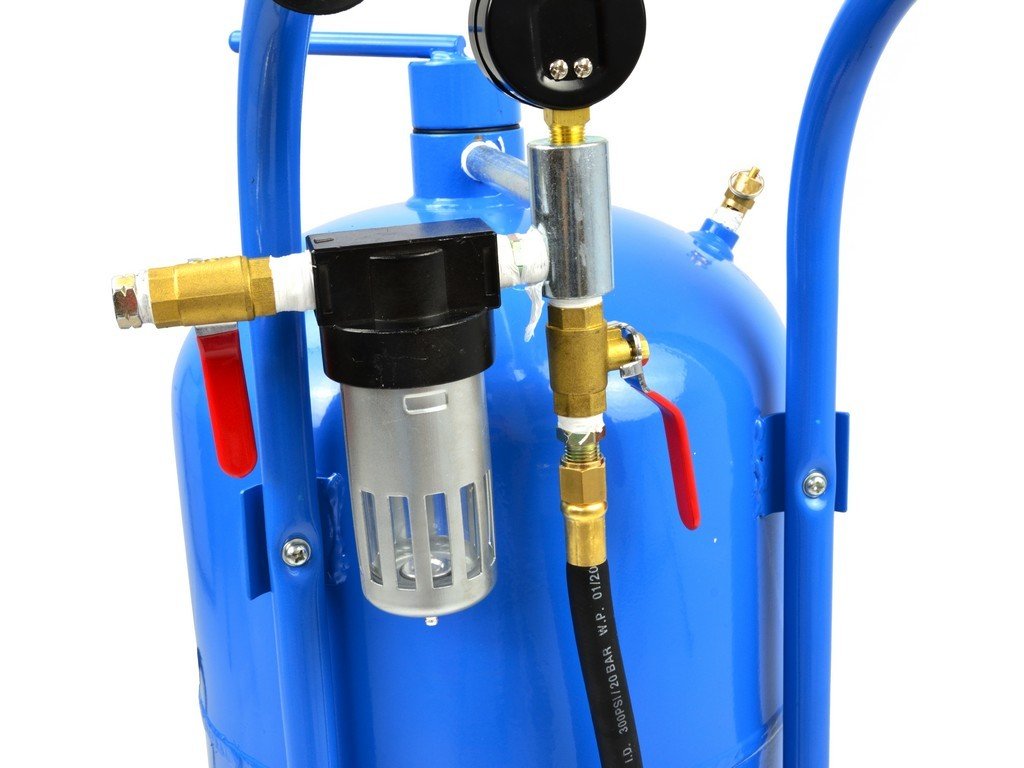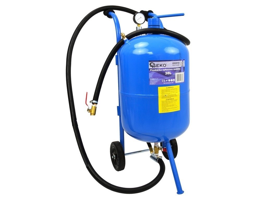 Mobilní tryskací a pískovací jednotka (tzv. „pískovačka“) objemu 38 litrů – Geko G02019.