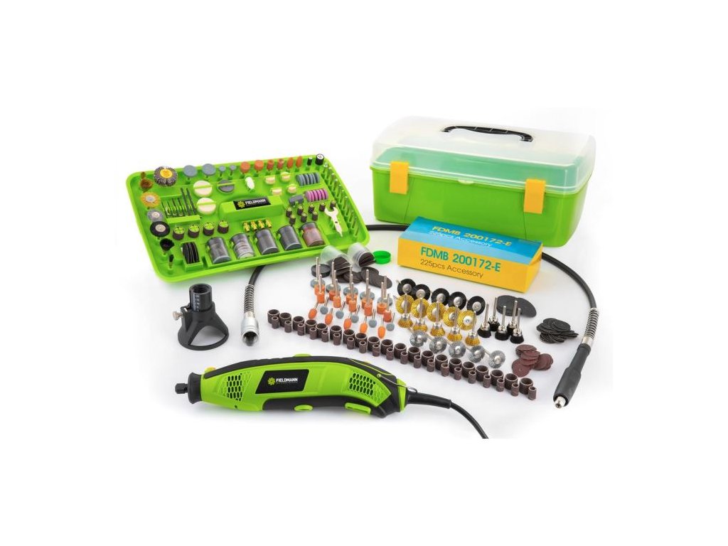 Modelářská bruska<BR/>Napětí: 230 V/ 50 Hz<BR/>Příkon:170 W<BR/>Rychlost bez zatížení:10000-35000 ot./ min<BR/>Velikost sklíčidla :0.8-3.2 mm<BR/>440 ks příslušenství<BR/>Hmotnost 2 kgDoplňkové parametry