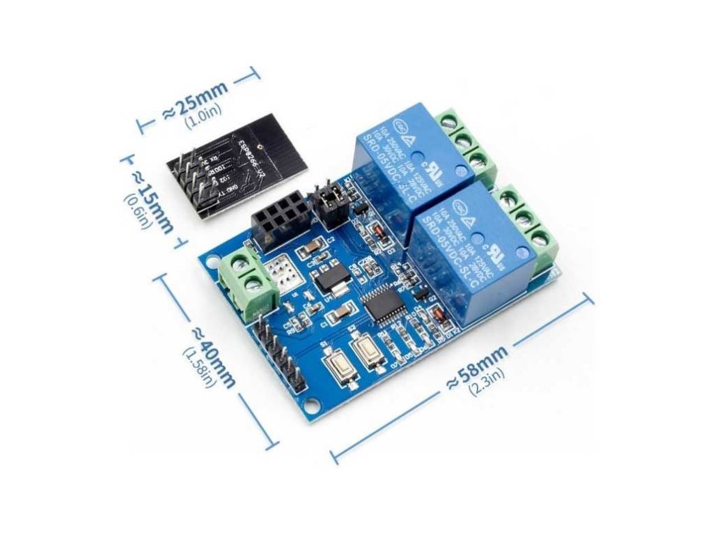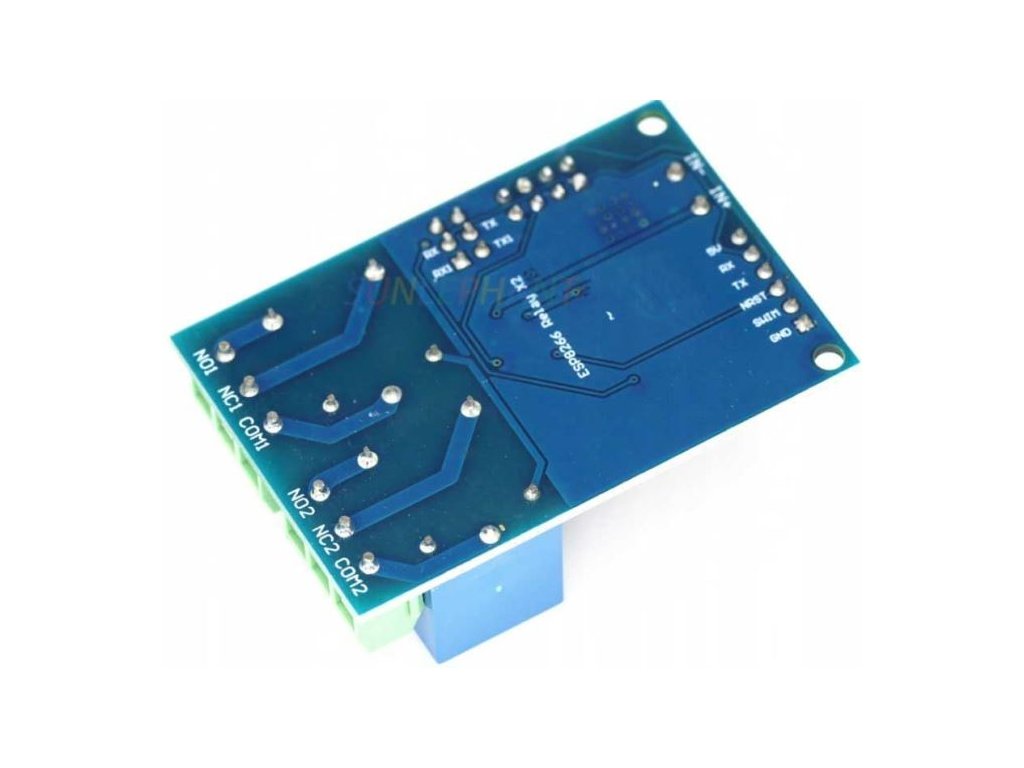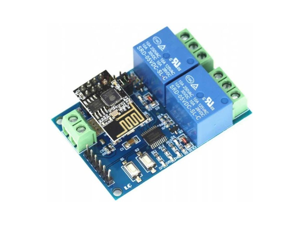 Modul 2x relé ESP8266 s wifi modulem ESP-01, napájení 5V Modul pro bezdrátové ovládání relé pomocí sítě wifi. Násuvný wifi modul je typu ESP-01. Ovládat lze bezdrátově v místní síti pouze jednoduchým konfiguračním procesem pomocí aplikace mobilního telefonu.**Funkce a vlastnosti:**