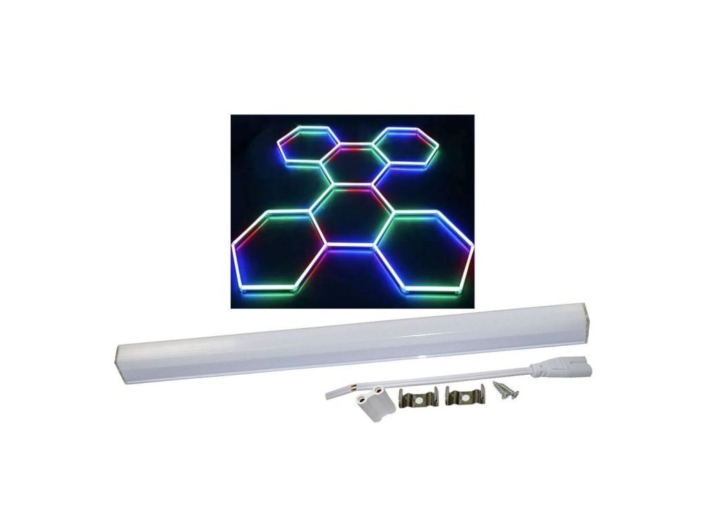 Modul 440mm, 230VAC/3W, RGB pro LED osvětlení HEXAGON LED osvětlení HEXAGON je modulový systém svítících trubic, které lze pomocí spojek různě skládat a vytvářet požadované útvary (čtverce, obdélníky, víceúhelníky, šipky, hvězdice apod.) LED trubice jsouosazeny oboustrannými konektory sloužícími ke vzájemnému propojení pomocí spojek-viz. související příslušenství. RGB moduly umožňují pomocí dálkového ovládače zapínat jednotlivé barvy, jejich kombinace, popř. dynamické, měnící se efekty.**Specifikace:**