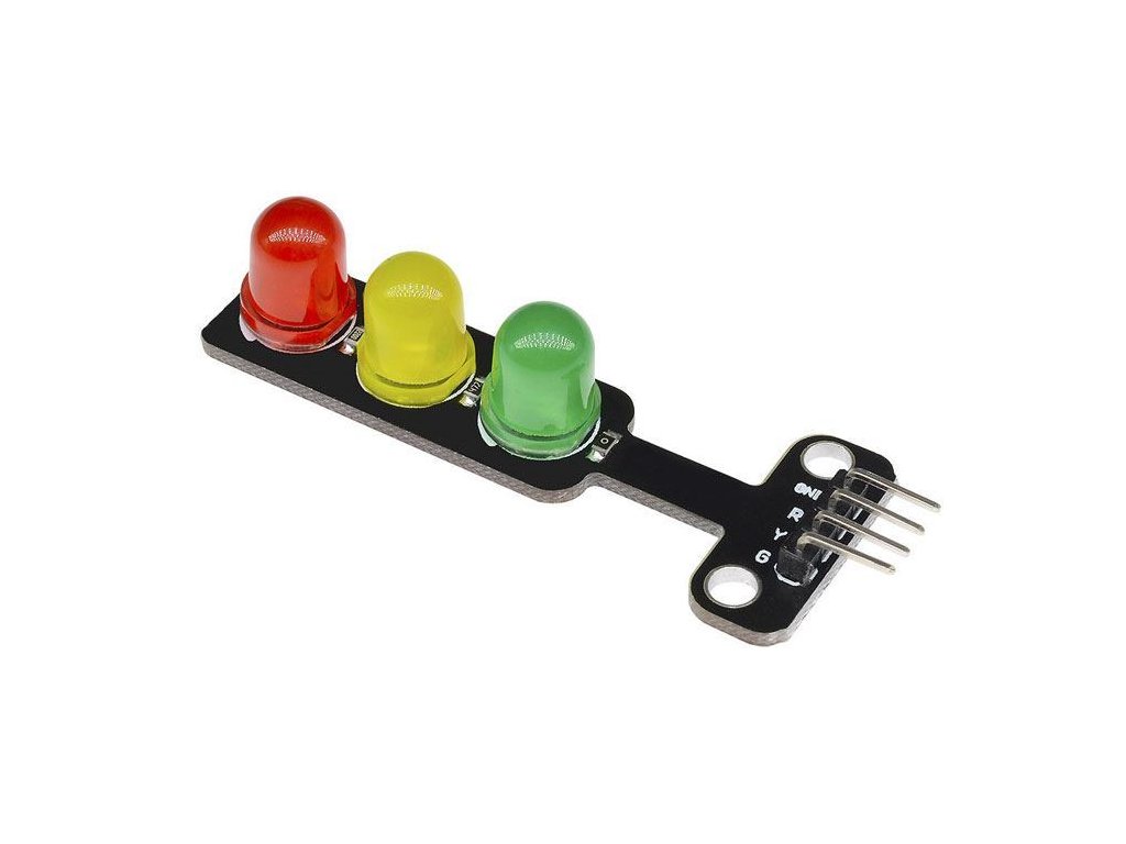 LED modul semaforu se společnou katodou a napájením 5V.3 piny pro napájení LED a jeden pin GND pro uzemnění.