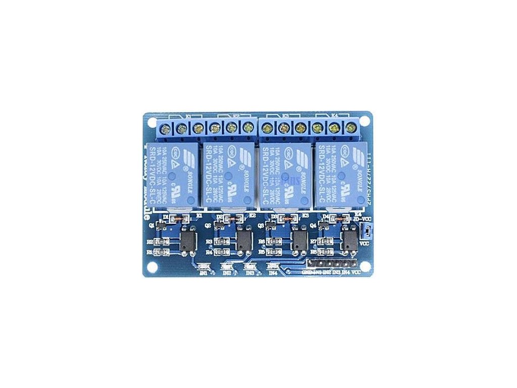 4 kanálový relé modul s napájecím napětím 24V osazen optočlenemSamotná relé se spínají uzemněním příslušného pinu.
