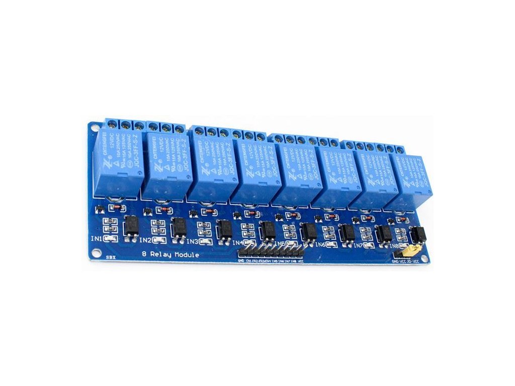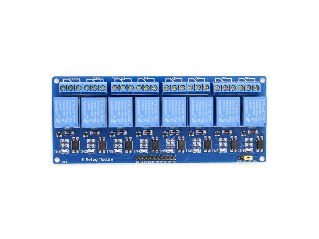 Modul relé 8x, napájení 12V, s optočlenem 8 kanálový relé modul s napájecím napětím 12V osazen optočlenem.Samotná relé se spínají uzemněním příslušného pinu.