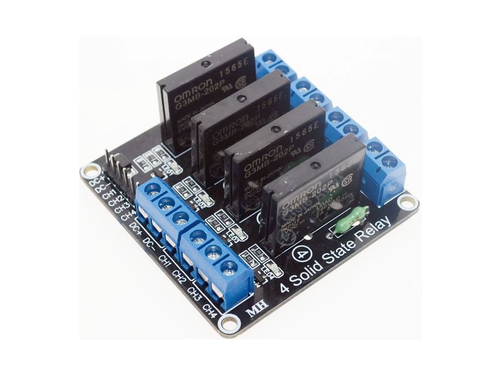 Modul HY-M283 s polovodičovým relé s napájecím napětím 12V a spouštěný signálem Log 0 <BR/><BR/>**Specifikace:** <BR/>Relé: OMRON G3MB-202P 1665E<BR/>Napájecí napětí: 12VDC <BR/>Ovládané napětí: 240VAC / max.2A <BR/>Spouštění: log.0 (0-1,5V/2mA) <BR/>Rozměry: 56x52x25mmDoplňkové parametry