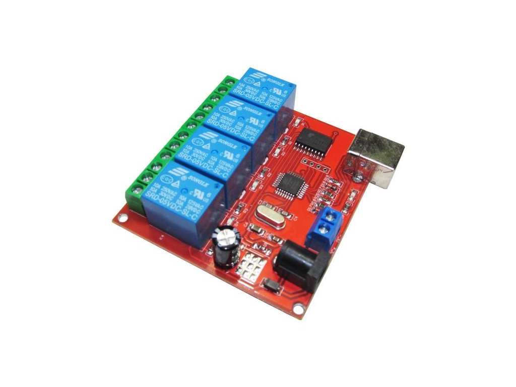 Modul relé USB, 4 kanálový s Attiny45 Modul relé s napájecím napětím 5V a ovládáním z PC (Win10). Bez nutnosti ovládače.**Specifikace:**