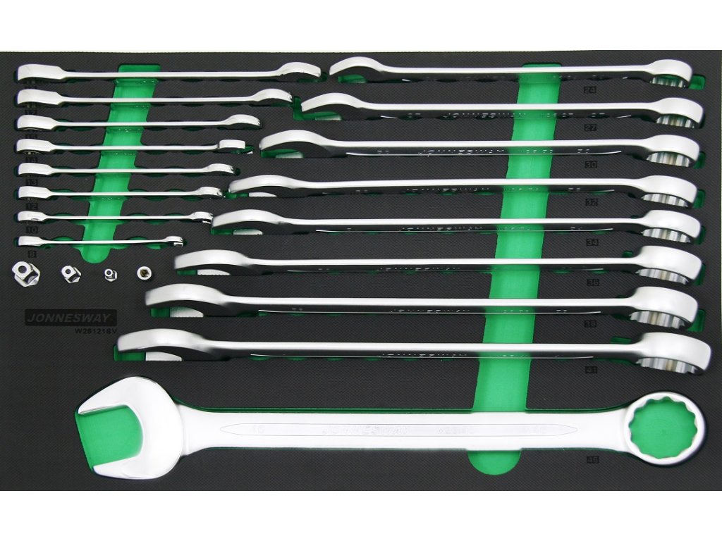 Pěnový modul EVA, vel. „C“ (570 x 380 mm): Souprava 21 kusů klíčů a příslušenství, velikosti 8-46 mm – JONNESWAY W26121SV
