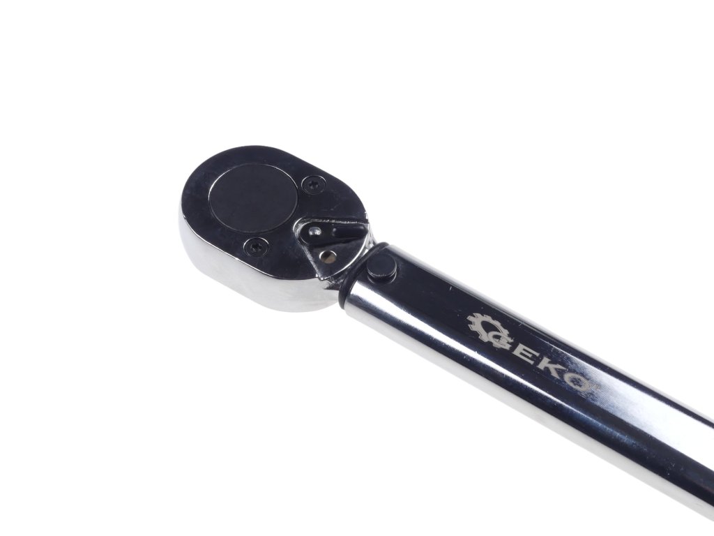 Momentový klíč GEKO G10060 Rozměr vodicího čtyřhranu: 1/2“ Rozsah utahovacího momentu: 28 - 210 Nm (10 – 150 ft-lb) Jednoduchý mechanický „momenťák“ pro autoservis, dílnu atd. Tzv. dynamometrický klíč je určen k utahování závitových spojů s předepsaným momentem utahování. Požadovaný moment se nastavuje otáčením rukojeti. Stupnice je naznačena na těle nástroje. Rukojeť má hrubší povrch, díky čemuž neklouže. Přepínání směru otáčení vlevo/vpravo pomocí páčky v hlavě klíče. Kvalitní produkt: vyrobeno z chrom-vanadové (Cr-V) oceli. Dodáváno v plastové kazetě pro bezpečné skladování a transport.