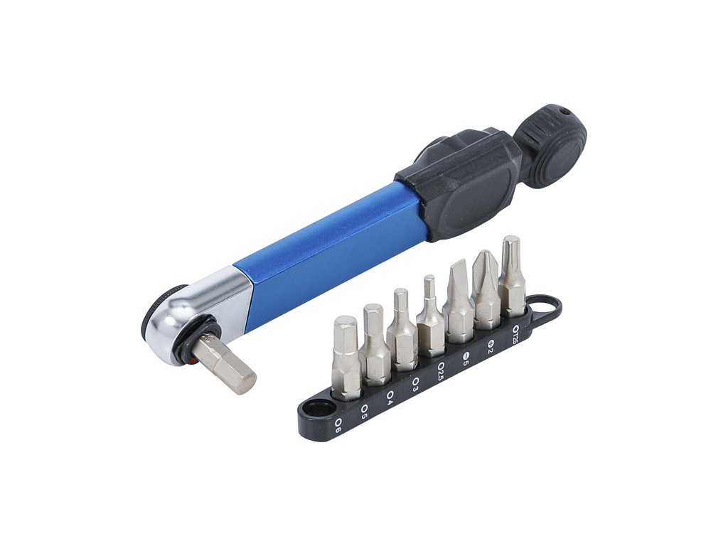 Nástroj „2 v 1“ - ráčna a momentový (tzv. dynamometrický) klíč. Umožňuje dotahování šroubových spojů pomocí bitů na přesný utahovací moment.