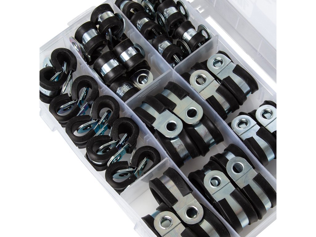 Celkem 52 kusů v praktické sadě pro různé průměry upevňovaných materiálů.