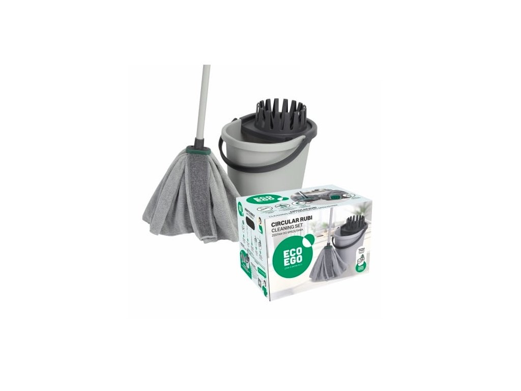 Úklidový set RUBI CIRCULAR se skládá ze čtyř prvků: kbelík s kulatým ždímačem, hlavice mopu RUBI a šroubovací rukojeť.Žádný prvek sady není náhodný, sada je promyšlená!