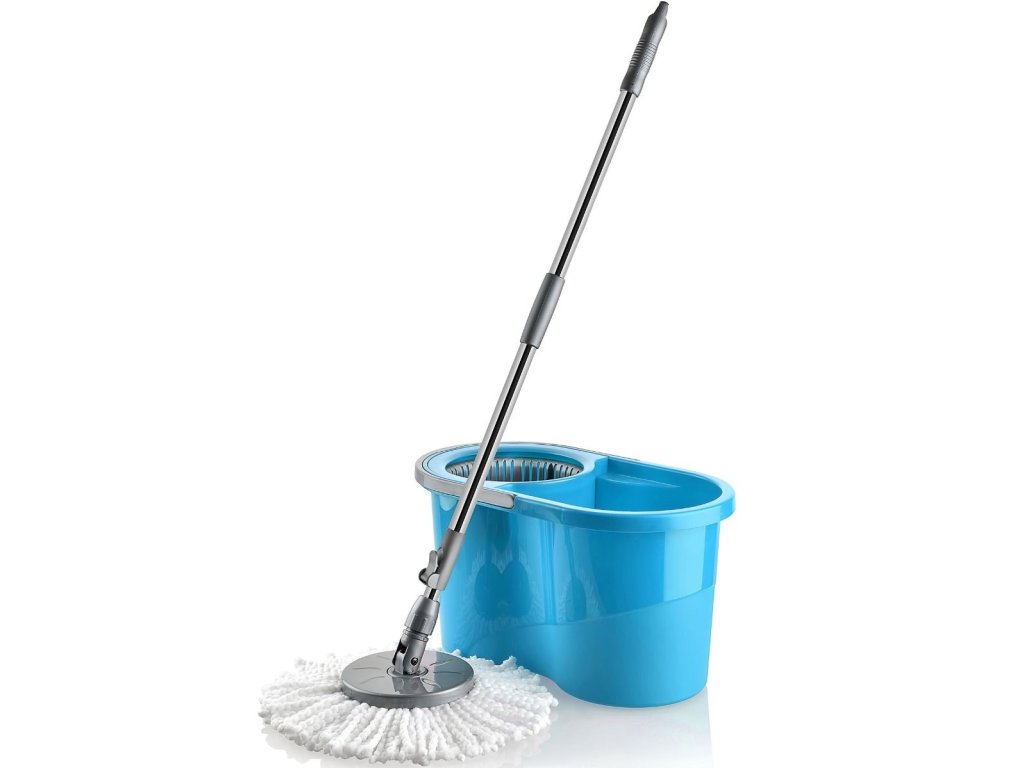 Mop s rotačním ždímačem umožňuje díky rotaci 360° odstředění a důkladné vyždímání mopu.Zajistí Vám jednoduché uklízení bez nutnosti ohýbání.