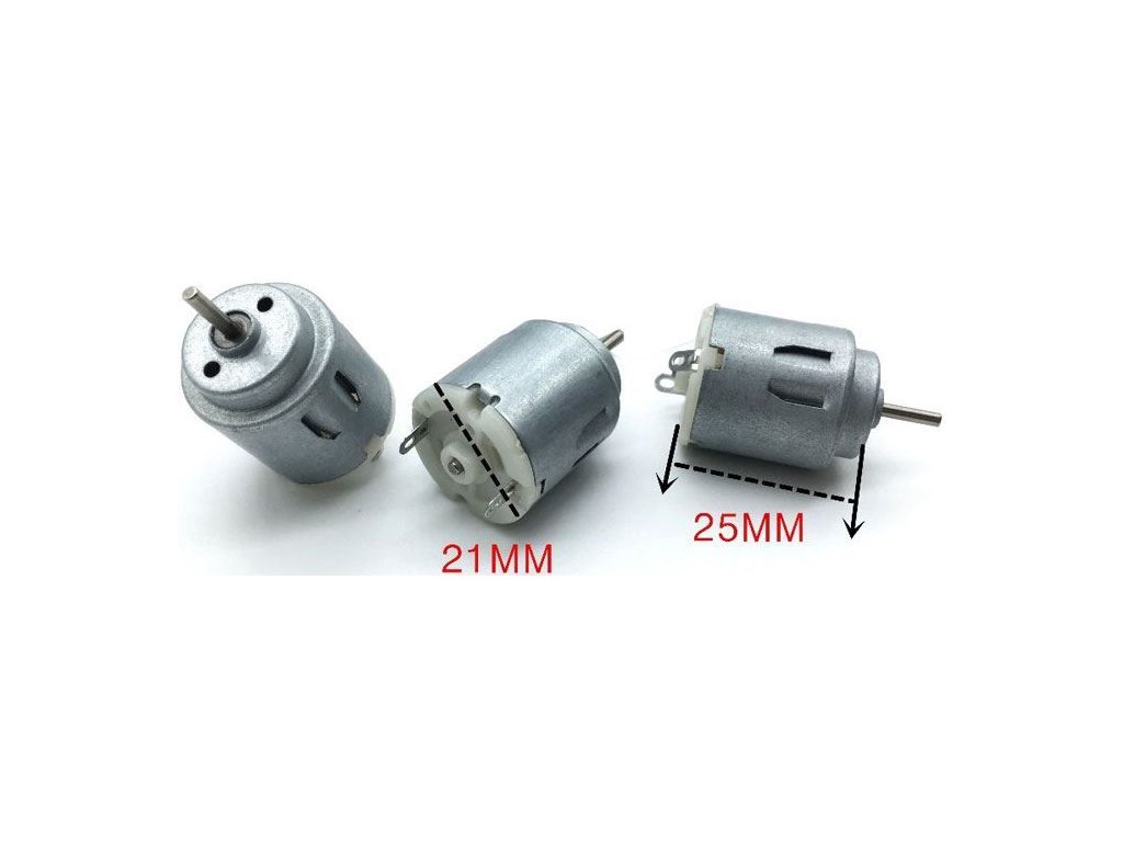 Motorek RF-140, 3-6VDC průměr 21mm, délka 25mm, délka hřídele 6mm, pruměr hřídele 2mm. Otáčky: 5000-20000 RPM