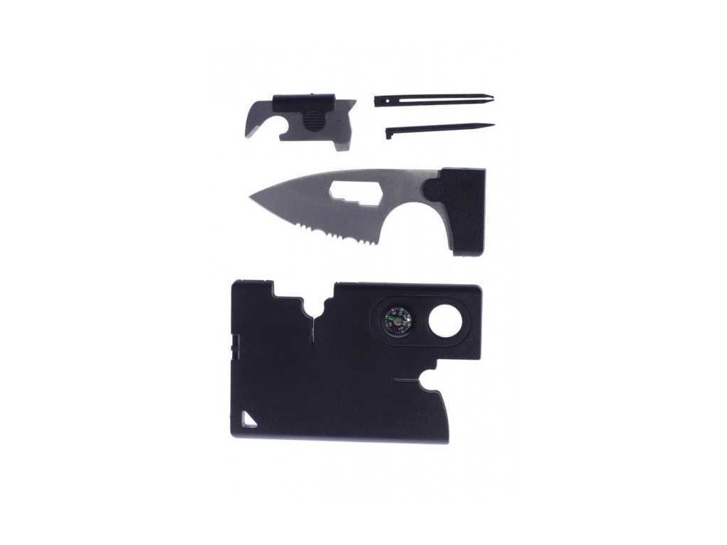 Multifunkční karta na přežití survival Army Multifunkční karta na přežití v plastovém provedení, která je velká asi jako vaše bankovní karty a bez problémů se vejde do peněženky.Karta obsahuje:Jednoruční nůž s výřezem na ukazováček