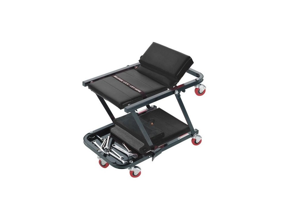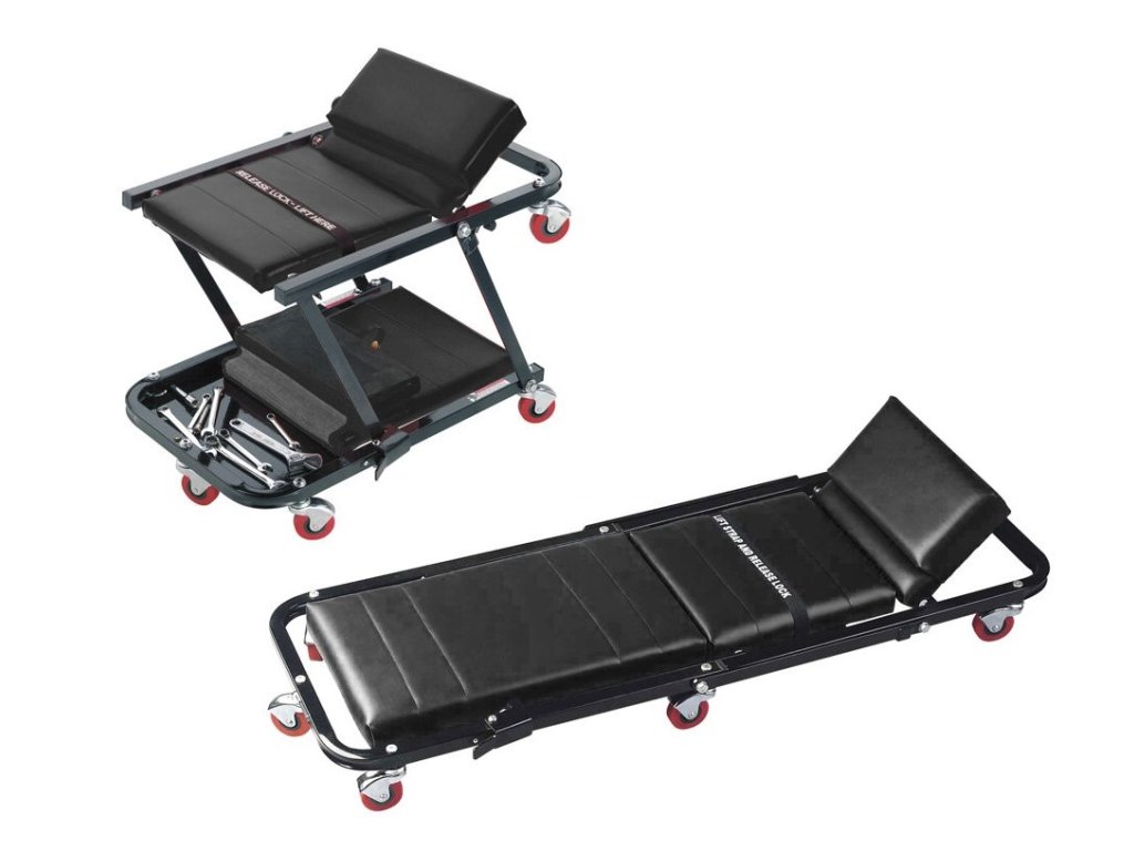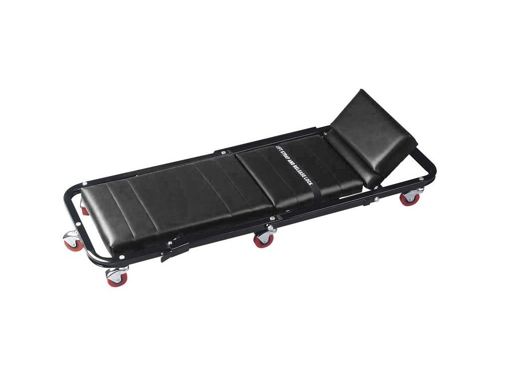 Čalouněné montážní lehátko, které lze velmi rychle a snadno složit na pohodlné sedátko, je určené zejména pro autoservisy a opravny silničních vozidel, zemědělských a stavebních strojů. Umožňuje pohodlné ležení mechanika při práci pod vozidlem nebo sezení na složeném sedátku. Hlavová část lehátka je polohovatelná a v úpravě na sedátko slouží jako opěrka. V dolní části lehátka pod čalouněním se nachází odkládací prostor např. pro nářadí. Kovový podvozek má 7 pojezdových koleček.
