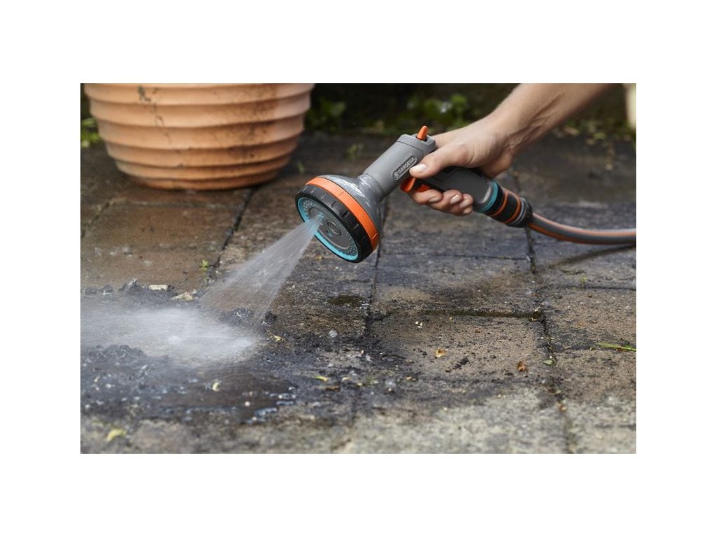 Multifunkční postřikovací pistole pro různé zavlažovací a čisticí úkony s pěti možnostmi nastavení. Odolná vůči mrazu.