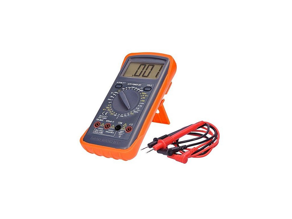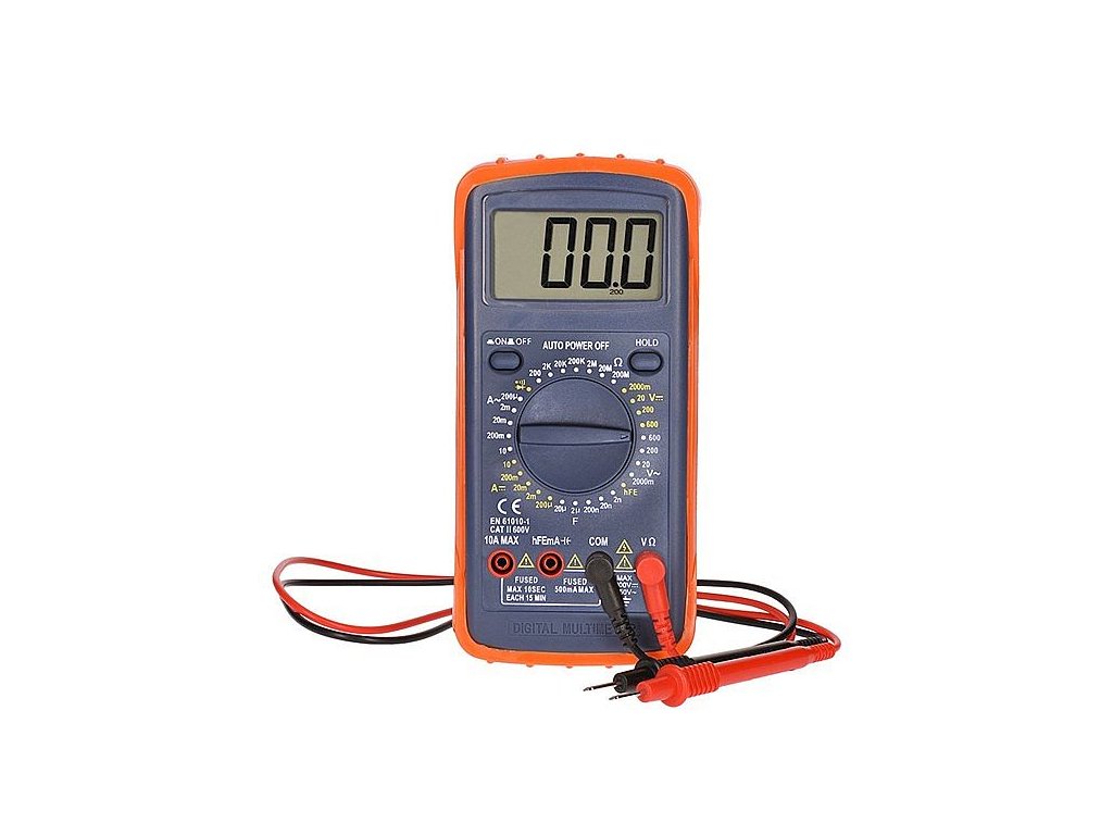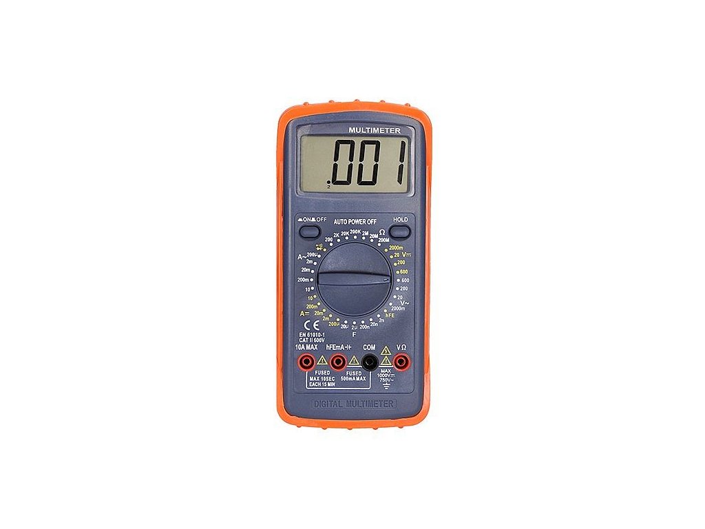 Multimetr, max. AC 600V/10A, max. DC 600V/10A, test diody, bzučák, hFE, kapacita, odpor