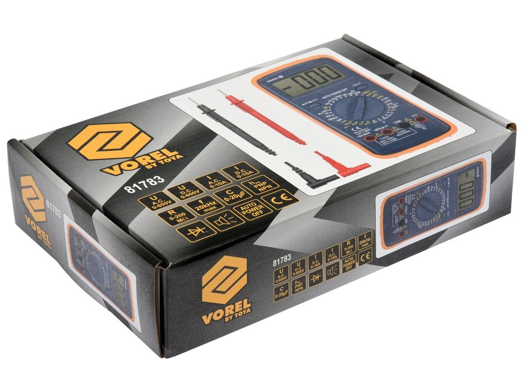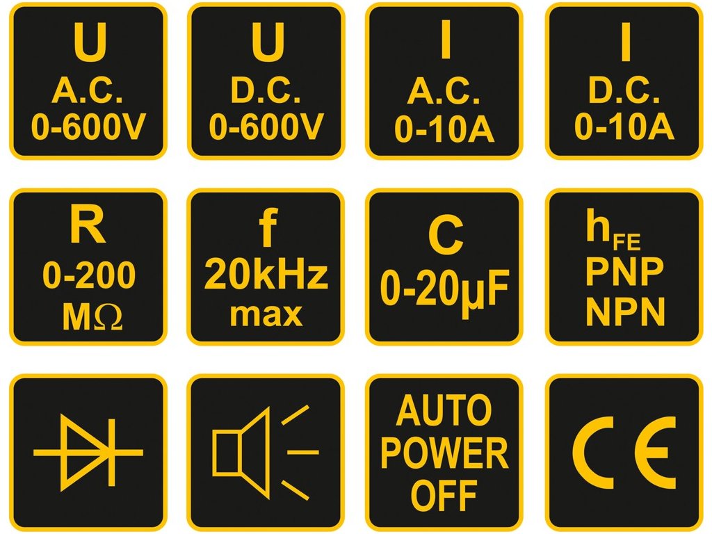 Tento měřák umožňuje měření střídavého a stejnosměrného napětí, proudu i odporu, kapacity, frekvence a teploty. Navíc je tento multimetr vybaven testovacím slotem pro kontrolu tranzistorů a zároveň umí testovat i diody. Mezi jednotlivými typy měření se přepíná pomocí otočného voliče, kde lze rovněž nastavit požadovaný rozsah u jednotlivých veličin.