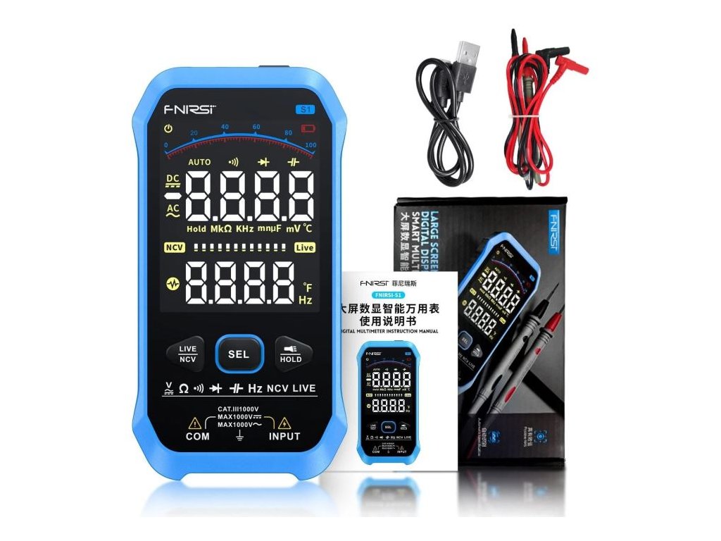 Multimetr FNIRSI S1 Digitální multimetr FNIRSI S1 s automatickým rozsahem se vyznačuje vysokou přesností, rozsáhlými měřicími funkcemi, velkým podsvíceným displejem.Integrovaná dobíjecí baterie o kapacitě 1000 mAh, která se dobíjí pomocí USB-C konektoru.