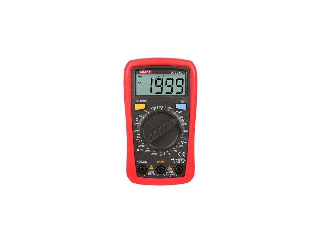 Multimetr UT131C UNI-T Displej 1999, v=15mm, DC V: 0,2-250V ±0,8%+1, AC V:200V-250V ±3%+3, DC A:0,2mA-10A±2%, R:0,2-200Mohm ±2%, Měření teploty -40°C až 250°C, test diod, prozváněčka, data hold, AUTO OFF po 15 minutách, napájení 2xAAA 1,5VUT131B s testem baterií a indikací jejich stavuNová generace multimetrů řady UT131 nabízí vyšší standart měření v cenově dostupnější kategorii digitálních multimetrů. Inovativní a industriální design zaručuje odolnost multimetru proti nárazu a pádu až ze dvou metrů. Nové rozvržení LCD displeje je přehlednější a praktičtější pro všechny uživatele, navíc má displej možnost podsvícení. Multimetryřady UT131 zaručují bezpečnou manipulaci a měření dle standartu CAT II.