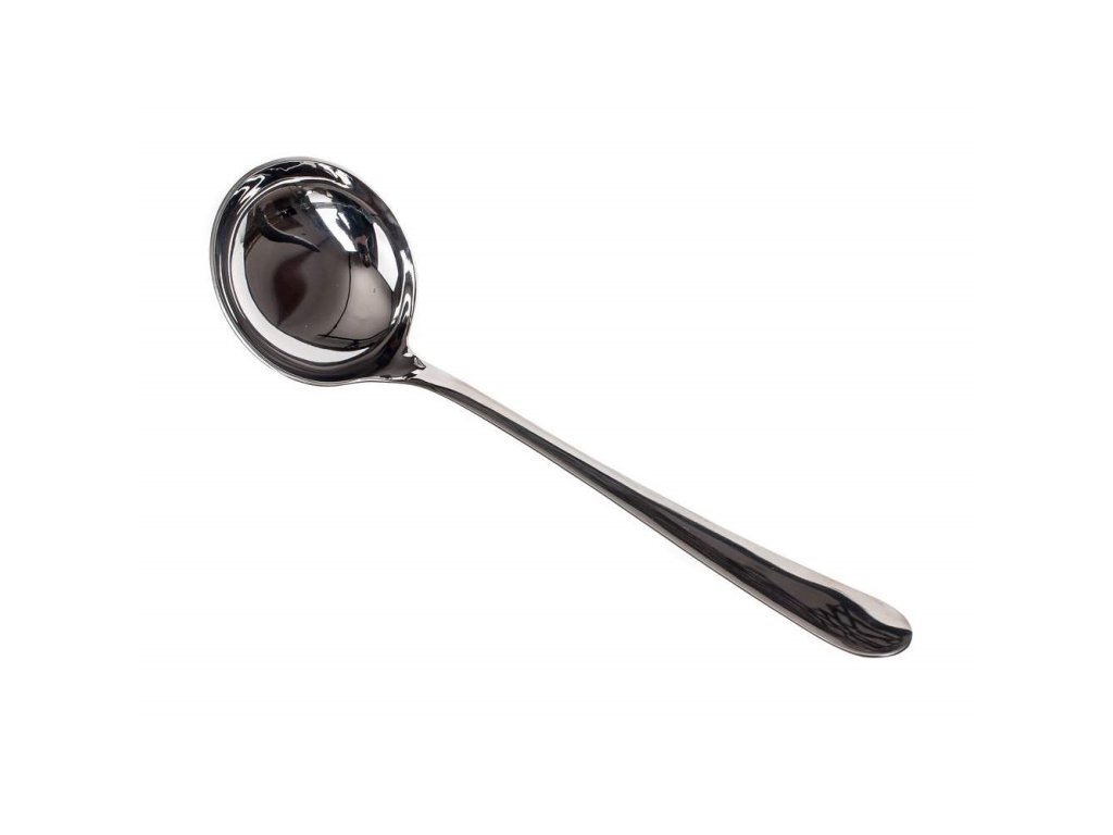 Naběračka na polévku délky 270 mm, šířky 90 mm a objemu cca 100 ml.Chromovanáí ocel 14/0 a síla materiálu 1.7 mm.