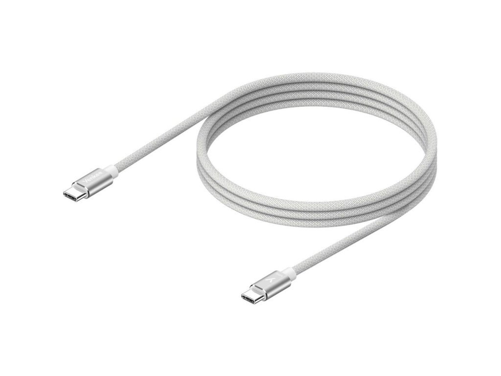Univerzální USB-C konektory na obou stranách zajišťují kompatibilitu s moderními smartphony, tablety, notebooky a dalšími zařízeními vybavenými USB-C portem. Bílé provedení dodává kabelu čistý a elegantní vzhled.