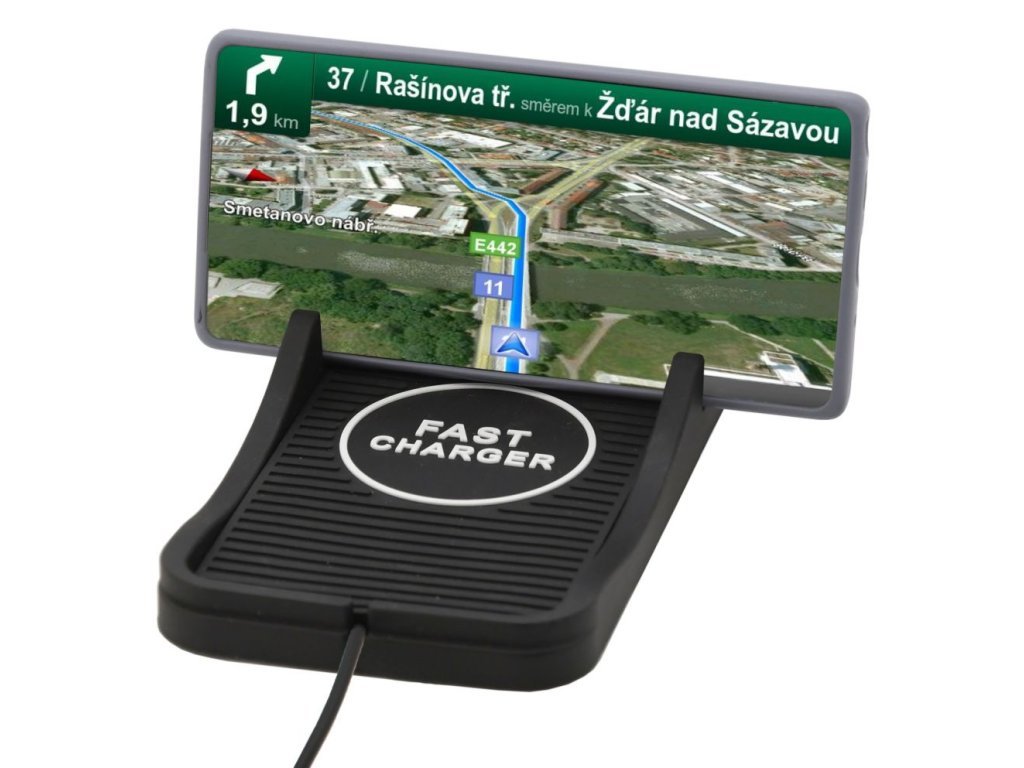 Podložka pro telefon s bezdrátovým Qi nabíjením. Technologie zařízení propůjčuje rychlé nabíjení s výkonem až 15W. Na podložku stačí mobilní telefon (podporující bezdrátové nabíjení) položit, poté se téměř okamžitě začne nabíjet.