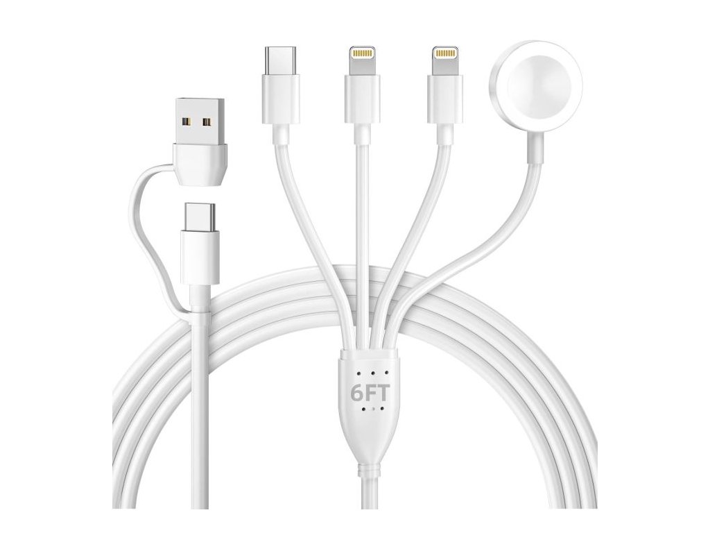 Vše, co potřebujete, je jeden univerzální kabel 4 ve 2<BR/><BR/>Specifikace:<BR/>Délka celkem: 180cm<BR/>typ: USB-A, UAB-C - USB-C, 2x Lightning, lightning iWatch <BR/>USB-C: 1,2A<BR/>Lightning: 0,7A<BR/>Watch: 0,2ADoplňkové parametry