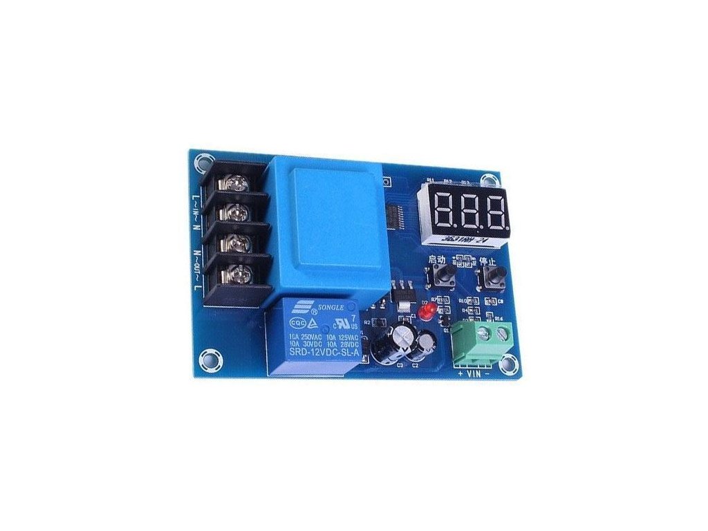 Modul je určen pro připojení nabíječky 230V~ na baterii v nastaveném napěťovém rozsahu v intervalu 3,7-120V. Tím je zajištěna ochrana všech dostupných baterií proti přebití i nadměrnému vybití. Příklad: pro olověnou baterii 12V lze nastavit připojovací napětí 11,8V a vypínací napětí 14,4V**Specifikace:**