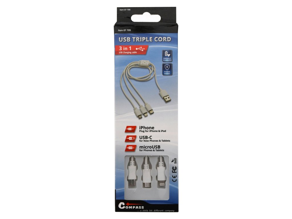 Nabíjecí USB kabel 3in1 (micro USB, iPhone, USB C)