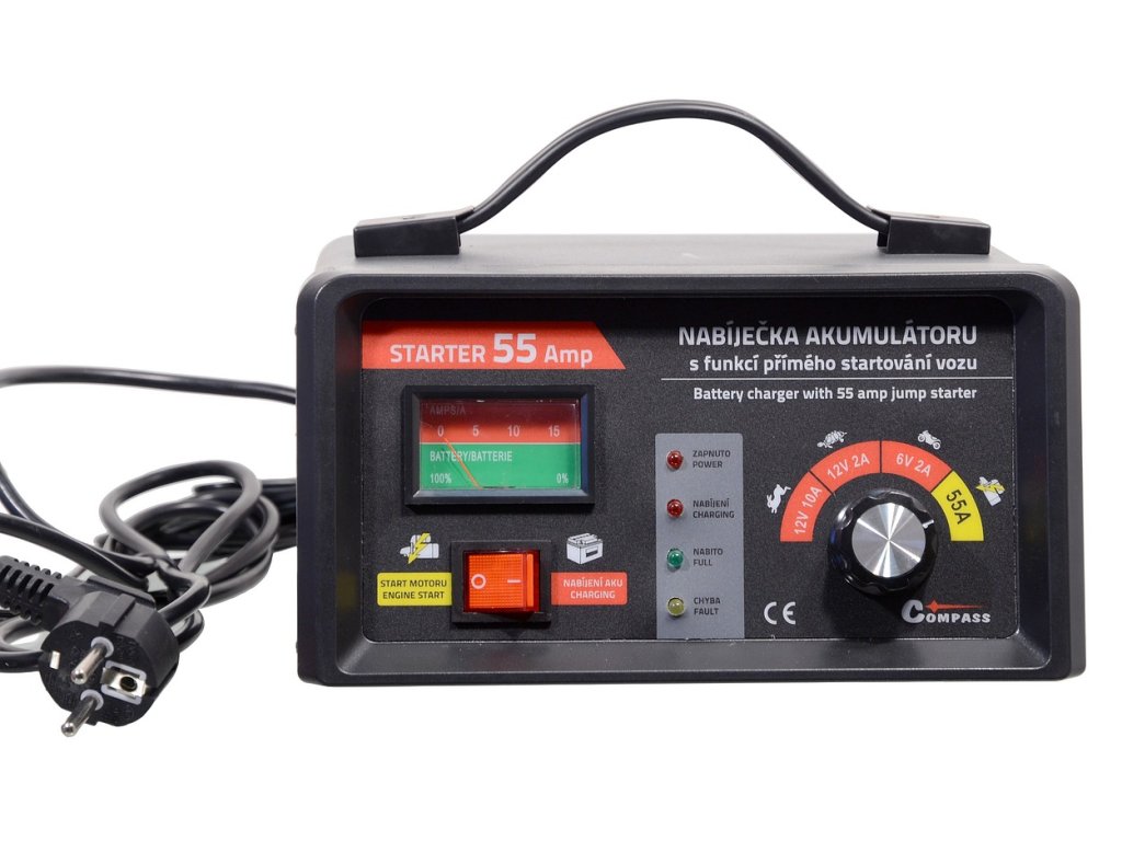 Nabíječka akumulátoru umožňuje nabíjet rychle nebo pomalu (velmi šetrně) autobaterie 12V i 6V a je vhodná pro kapacitu baterie až 100 Ah. Je určena k nabíjení olověných akumulátorů.