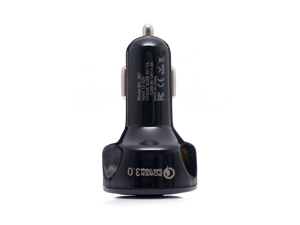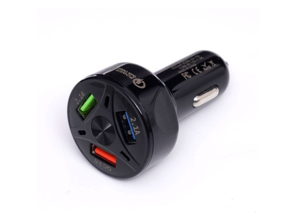 Nabíječka do auta se třemi USB vstupy může po vložení do zástrčky zapalovače v automobilu nabíjet až tři zařízení současně. Napětí se upravuje automaticky díky funkci SMART. Disponuje vícestupňovým ochranným systémem zajišťujícím stabilní a bezpečný provoz a zároveň eliminuje riziko poškození nabíjeného zařízení. Nabíječka je vhodná pro vstupní napětí 12 V i 24 V.