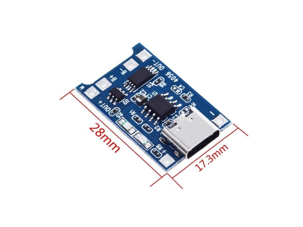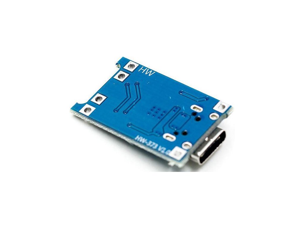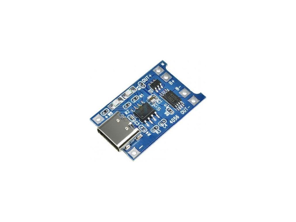 Nabíječka Li-Ion článku 1A s ochranou, modul s IO TP4056 (USB C) Nabíječka je určena pro nabíjení 1-2 lithiových článků s napětím 3,6V konstantním proudem 1A až do napětí 4,2V, které poté udržuje na pólech článku.**Funkce:**