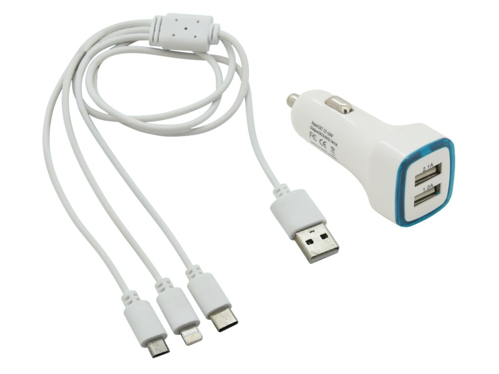 Sada mimo USB zástrčku obsahuje také napájecí kabel 3in1 pro iPhone, microUSB a USB C.