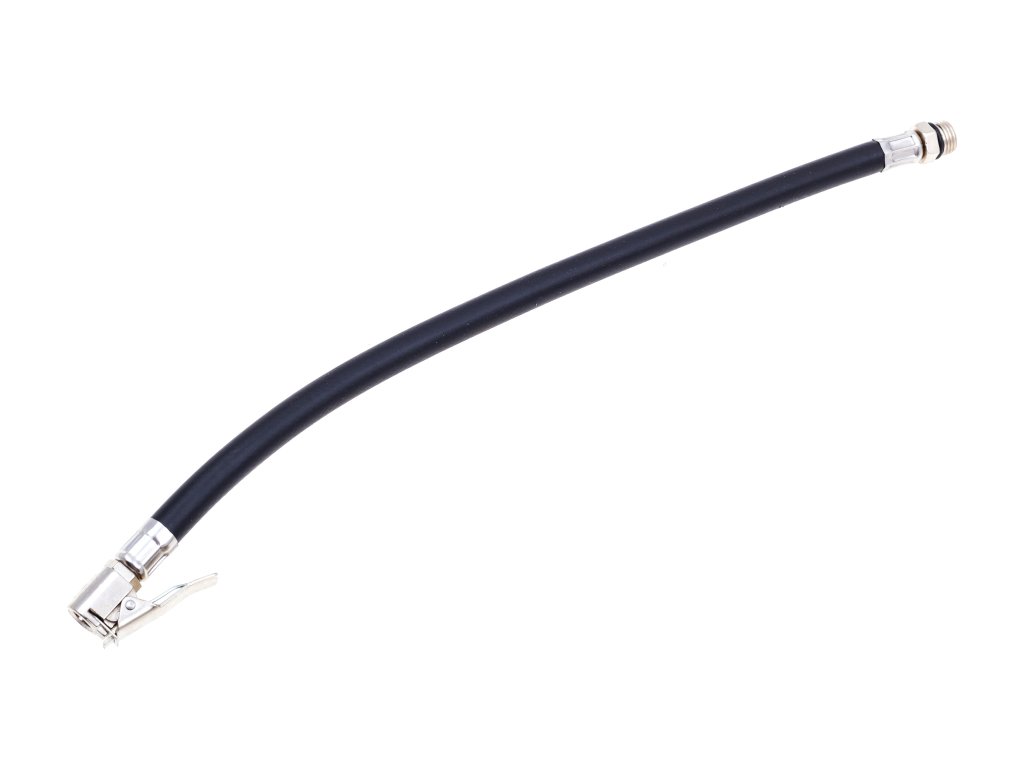 Náhradní hadice s koncovkou na klasický auto ventil pro foukání kol. K použití pro pneuhustiče, manometry, hustící pistole apod.