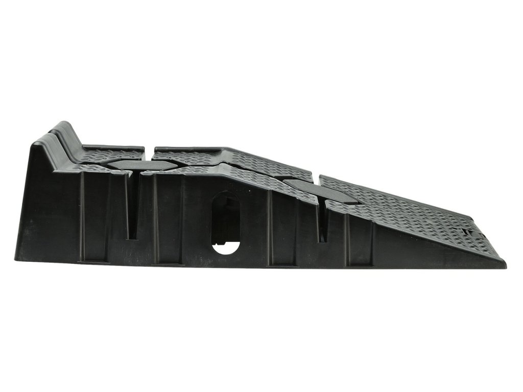 Bezpečné použití: drážkování zlepšuje trakci, přední hrany jsou vybaveny vysokými zarážkami bránícími přejetí plochy a spadnutí auta z nájezdu.