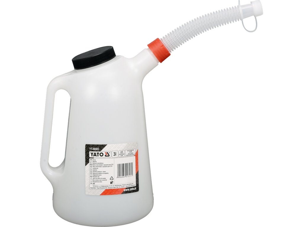 Zhotovení z odolného PE materiálu odolného vůči technickým kapalinám, opatřená šroubovacím víkem a ohebnou nálevkou.