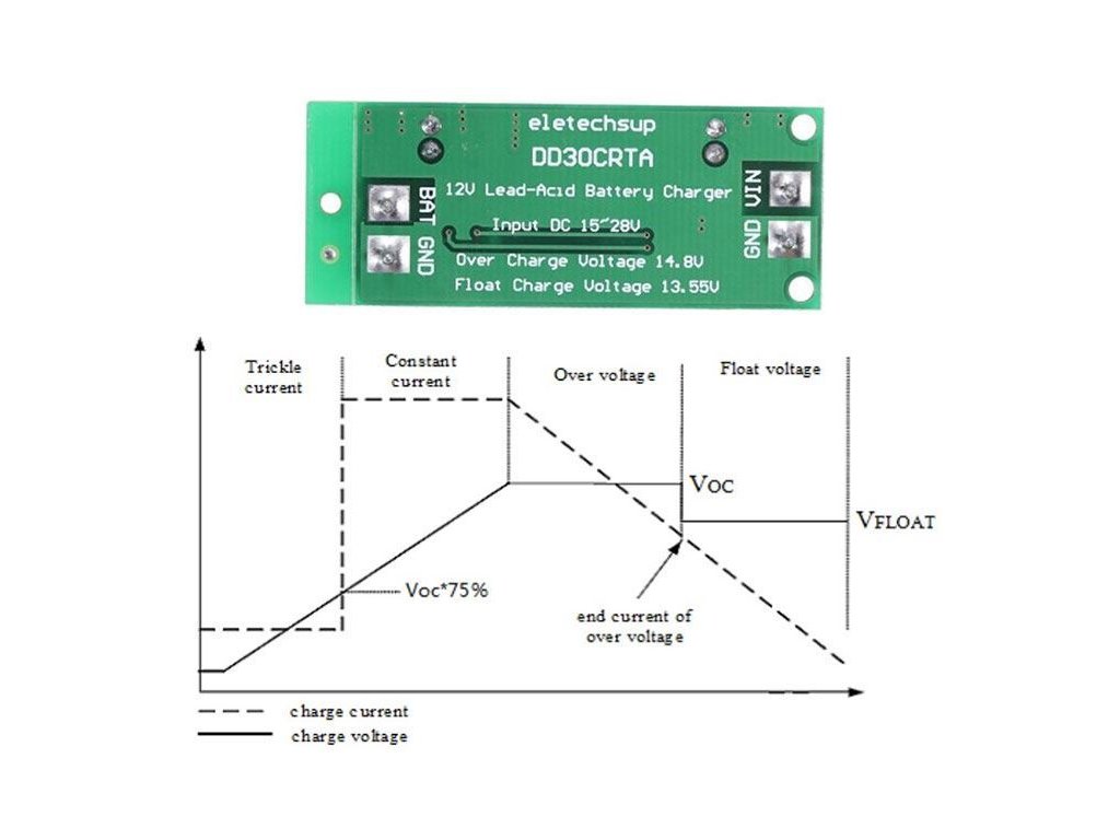 Napájecí modul, nabíječka olověných baterií 12V/3A, modul DD30CRTA DD30CRTA je modul pro pulsní automatické nabíjení olověných baterií 12V s maximálním nabíjecím proudem 3A.Hluboce vybité baterie jsou nejprve nabíjeny na 17,5 % maximální naprogramované hodnoty