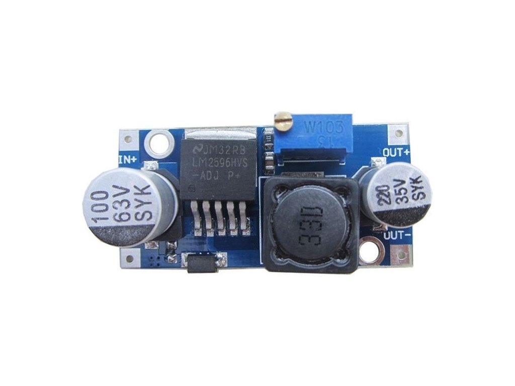 Impulsní neizolovaný měnič DC-DC 4,5-35V/3-33V nastavitelný s IO LM2596<BR/><BR/>**Technické parametry:** <BR/>-vstupní napětí 4,5-50V, krátkodobě do 60V<BR/>-výstupní napětí 3-35V nastavitelné<BR/>-výstupní proud 2A (špičkově 3A) <BR/>-výstupní výkon max.15W<BR/>-účinnost 92% <BR/>-rozměry 40x21,5x13,5mm/4g <BR/><BR/>Dokumentace: https://www.hadex.cz/spec/m406f.pdf