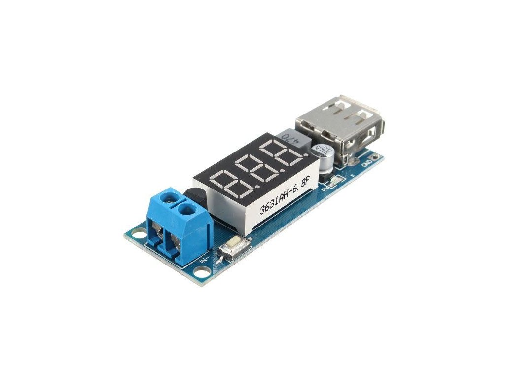 Napájecí modul, step-down měnič 4,5-40V na 5V/2A, USB+voltmetr