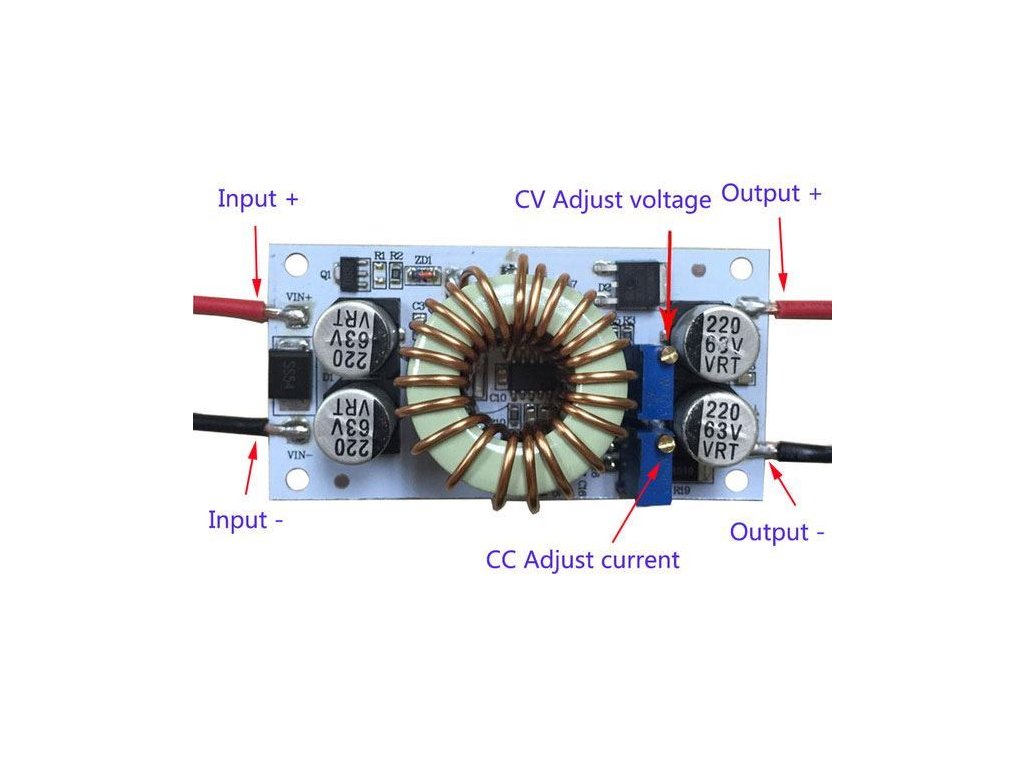 Napájecí modul, step-up měnič CV/CC 250W Impulsní neizolovaný step-up měnič DC-DC 8,5-16V/10-50V 0-8A nastavitelný jako zdroj napětí i zdroj konstantního proudu.**Technické parametry:**