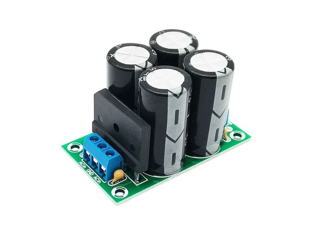 Modul zdroje s usměrňovacím můstkem 25A a elektrolyty na 63V. Součástí jsou rovněž blokovací keramické kondenzátory.Doplňkové parametry