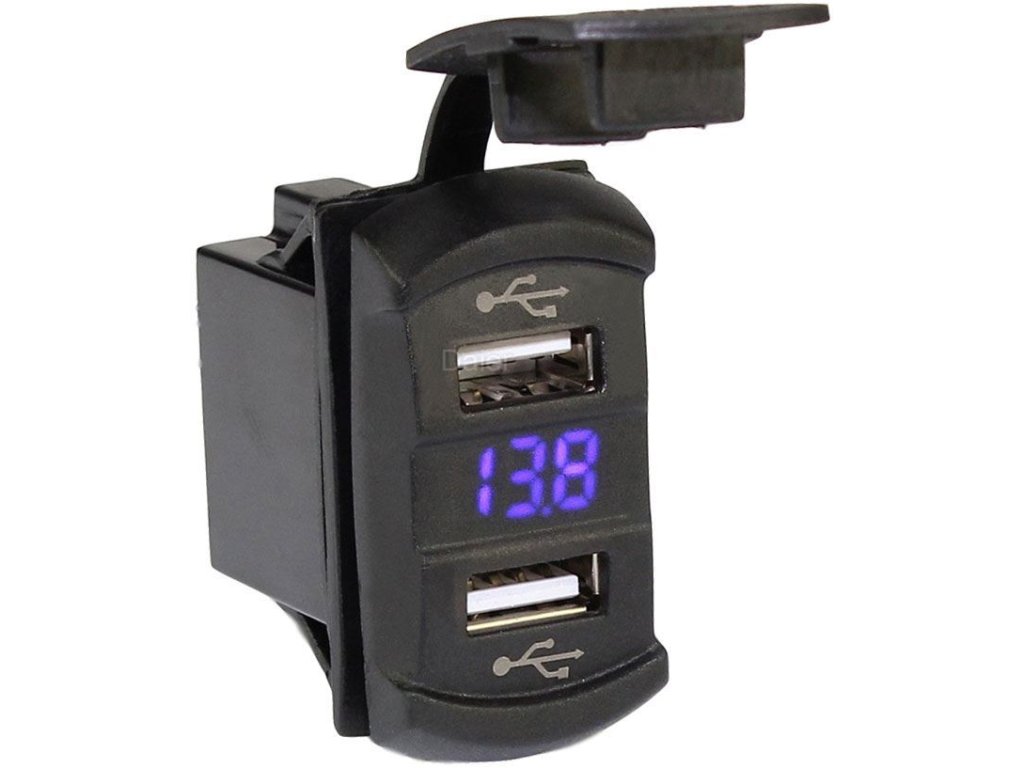 Napájecí zdířka 2x USB - typ Carling s voltmetrem - modrý
