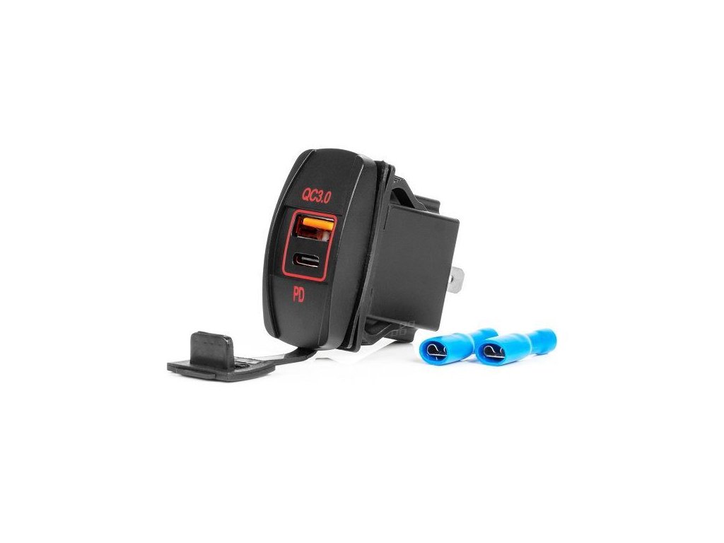 Napájecí zdířka vodotěsná, ve tvaru člunu USB + USB-C QC3.0 12V 24V