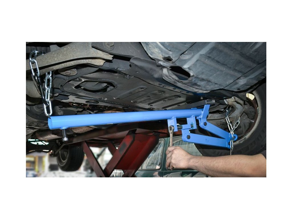 Inovativní a robustní nástroj pro odtažení a držení kyvného ramene přední nápravy při demontáži náboje kola. Tento nástroj je speciálně navržen tak, aby umožnil snadno a rychle provádět montáž i demontáž náboje předního kola nebo ložisek. Rameno je zajištěno po celé délce, což umožňuje kontrolované polohování a opětovné stažení ramene k náboji.