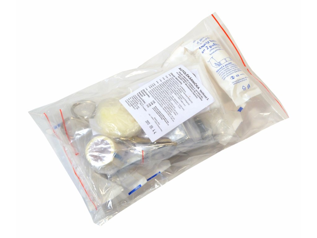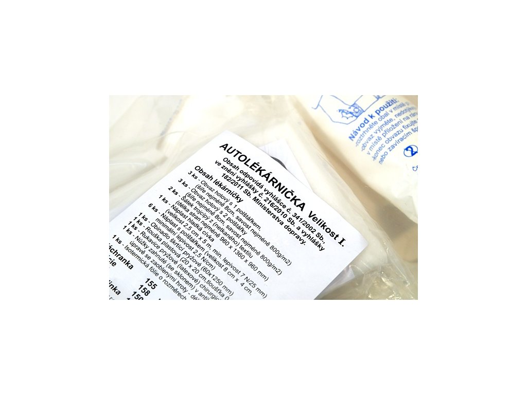 Náhradní náplň pro autolékárničku vel. I. Obsah odpovídá vyhlášce č. 341/2002 sb., ve znění vyhlášky č. 216/2010 Sb., a vyhlášky 182/2011 Sb. Ministerstva dopravy ČR.