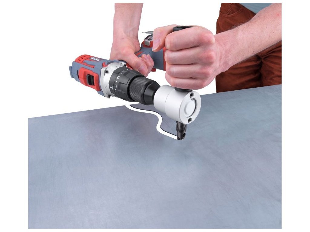nástavec na vrtačku k stříhání plechu, oboustranný