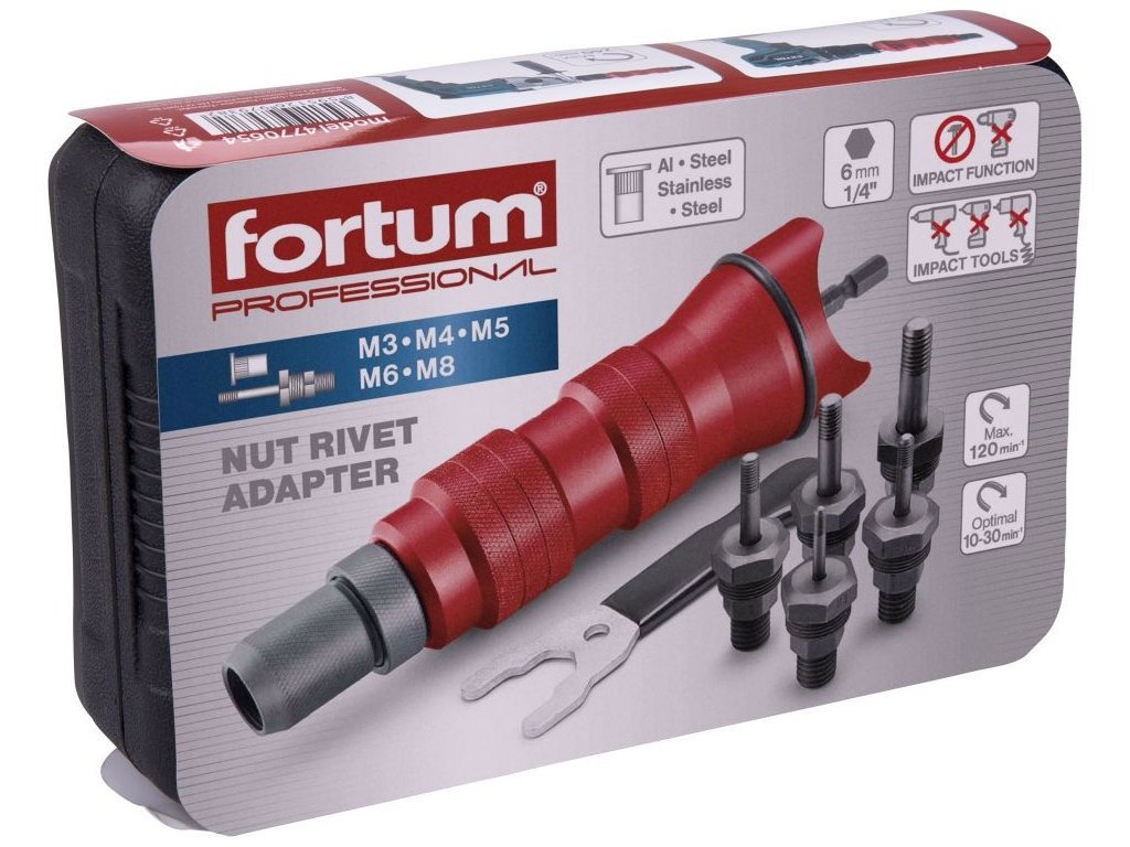 Nástavec nýtovací na vrtačku, pro nýtovací matice M3-M8, CrMoV FORTUM