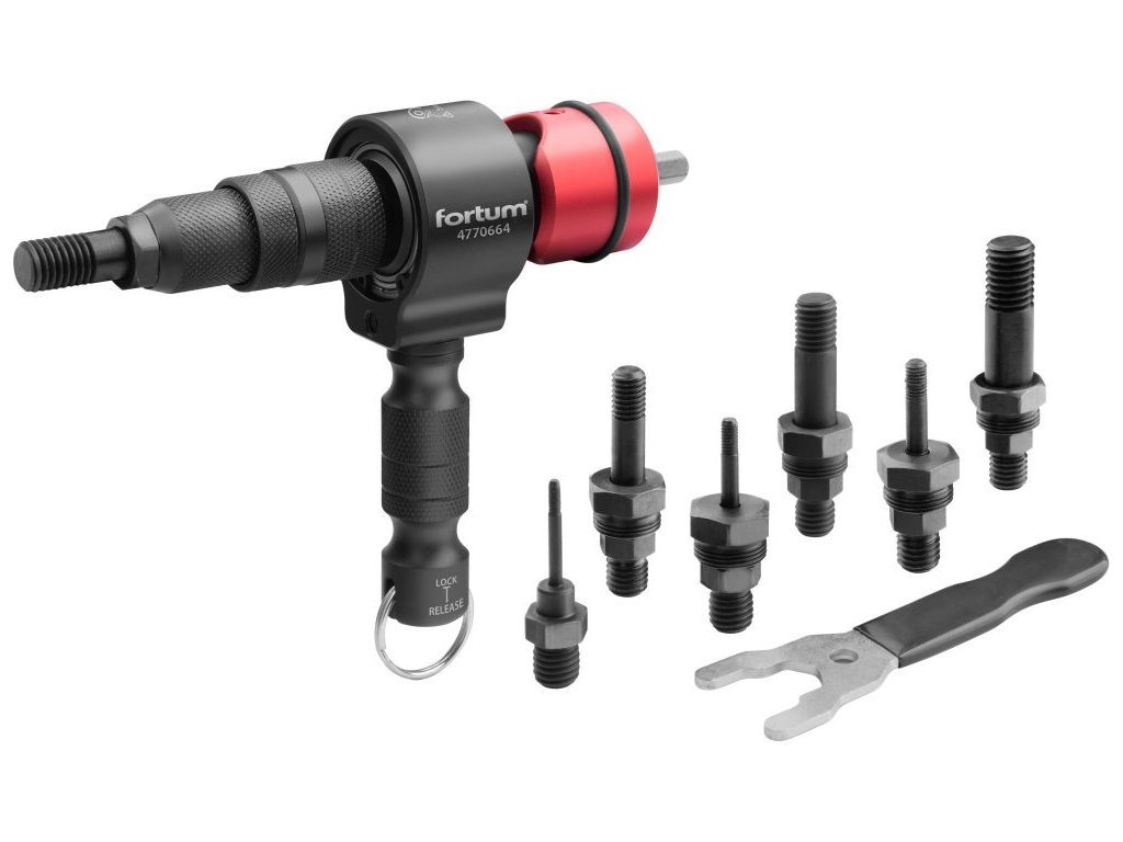 Nástavec nýtovací na vrtačku T, pro nýtovací matice M3-M12, CrMoV FORTUM